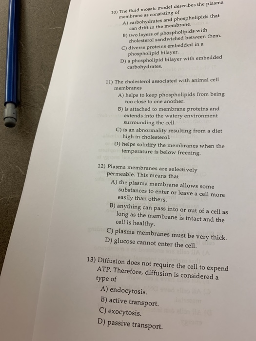 Solved 10 The Fluid Mosaic Model Describes The Plasma Chegg Com